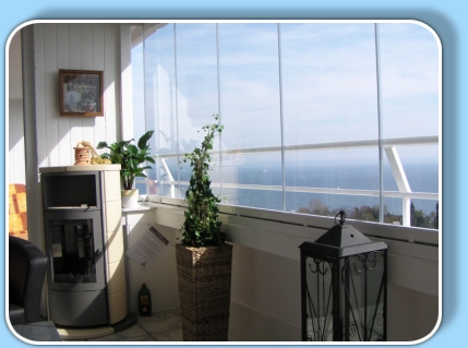 Damit Sie die herrliche ''Meerblick-Atmosphäre'' auch in den Abendstunden und während der kälteren Monate genießen können, haben wir die Terrasse zur Hälfte mit speziellen Glaselementen versehen. So haben wir für Sie eine Art Wintergarten und damit quasi einen zusätzlichen Wohnraum geschaffen.