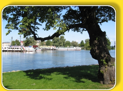Blick aufs Wasser und die weiße Flotte Schwerins