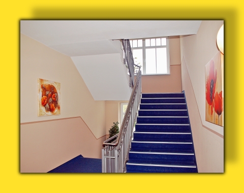 | Kostenlose Benutzung des Vital-, und Wellnessbereiches mit u.a. Schwimmbad, Sauna, Fitnessgeräten, Ruheraum und Wintergarten |  | Trockenraum mit Münzwaschmaschinen und -trocknern |  | Fahrstuhl |  | Gemeinschaftlicher Fahrradkeller