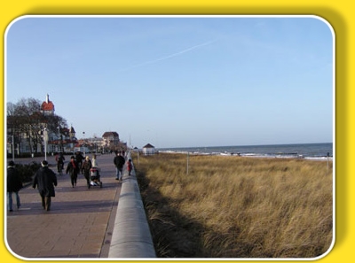 Flanieren Sie auf der mondänen Ostseeallee, die mit Ihrer Teils hundertjährigen Architektur und nostalgischem Flair zum Bummeln einlädt.