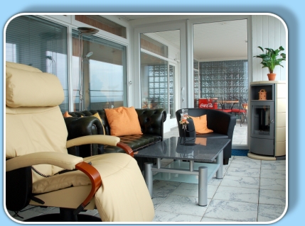 Außerdem steht für Sie in unserem verglasten "Wintergarten" ein hochwertiger Shiatsu-Massagesessel bereit.